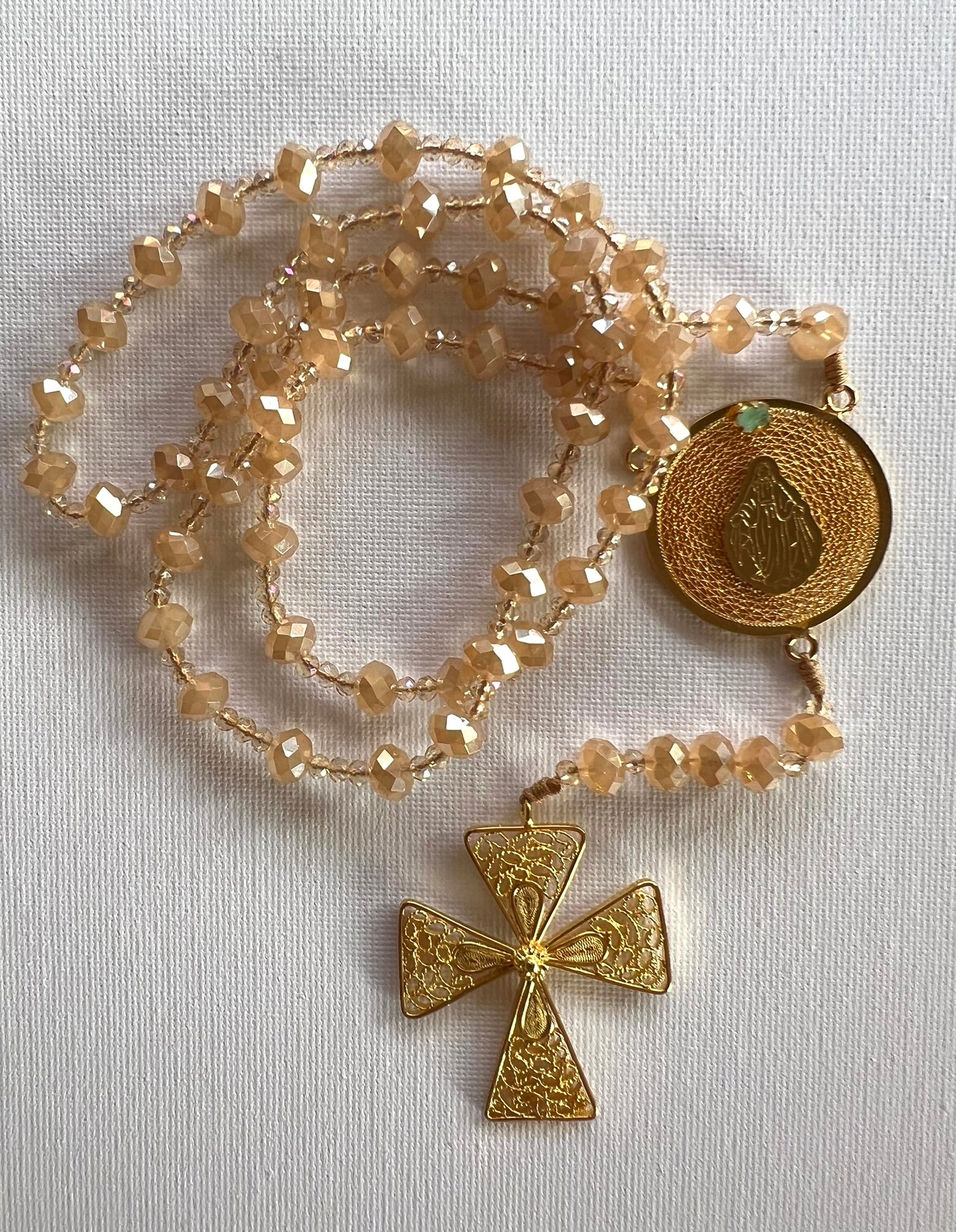 Como un acto de fe, belleza y propósito. Más que una marca de joyería, es una expresión del alma: un camino de servicio, oración y arte que transforma la fe en creación. Cada joya refleja la luz de lo sagrado y la sensibilidad de una mujer que camina con propósito.
