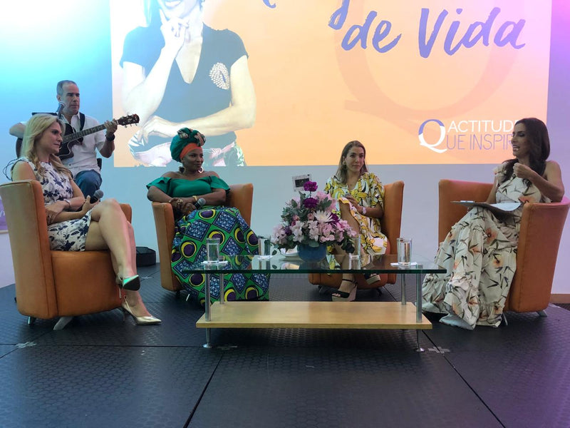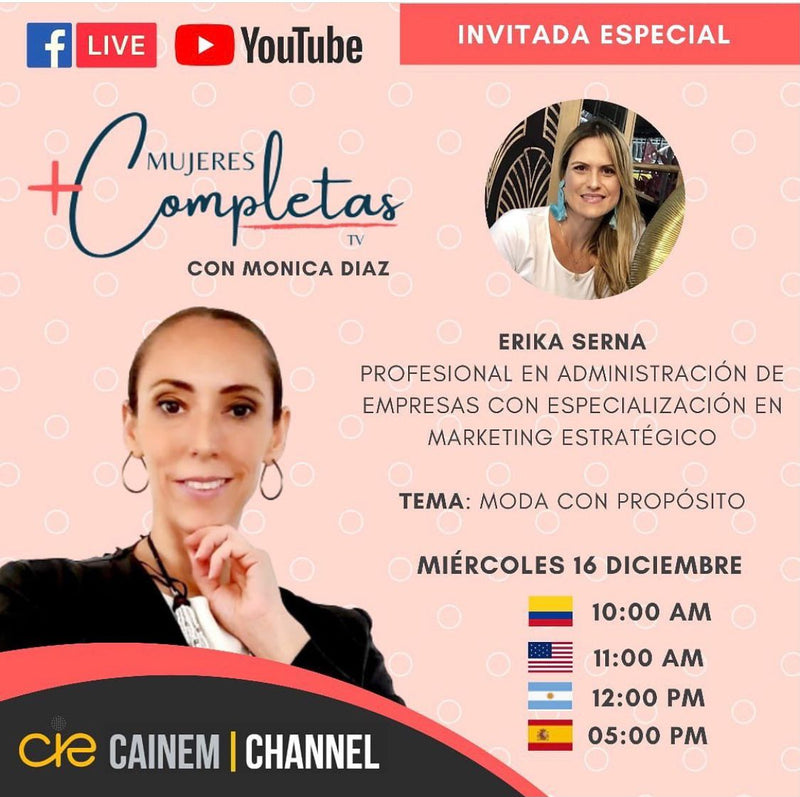 Participación destacada en “Mujeres + Completas” con Mónica Díaz, donde se exaltó su propuesta de moda con propósito, compartiendo experiencias de crecimiento personal y profesional.